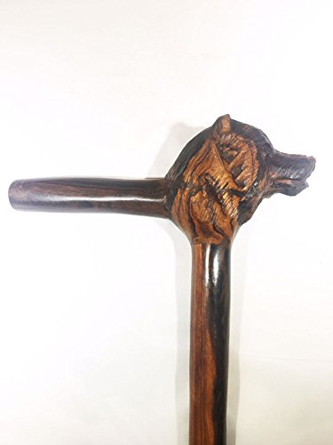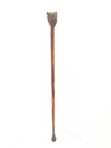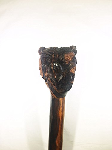 Walking Cane Hiking Stick Hand carved Ironwood (palo fierro) rustic look with Hand-Carved Grizzly Bear Design, Sizes vary between 35” and 41” By IECAP LLC
