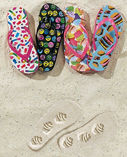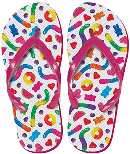 Studio : The Mines Press, Inc. Publisher : The Mines Press, Inc. Binding : Misc. Product Description What girl doesn't want to leave a great impression on the beach - literally?!? With these crazy fun flip flops, she'll do just that! Colorful flip flops feature and bright, fun graphic on the soft, 1/2" thick polyethylene sole that is just her style. The PVC strap is sturdy but comfortable so they are easy to wear. And best of all - the debossed bottom of the flop leaves a fun pattern in the sand with every step! Flops are available in girls and adults sizes so that everyone can get in on the fun! At iscream we are obsessed about fun, function and style - see our whole line for new ideas and old favorites with a new twist! 0