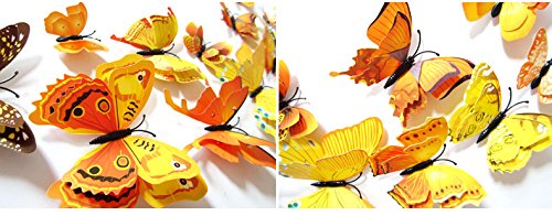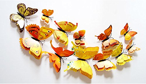 ST park Double-Layer 3D Magnetic Butterfly Simulation of Three-dimensional Wall Stickers,Wedding/Living room/bedroom Wallpaper Decorative Stickers. 24pcs.(Yellow)