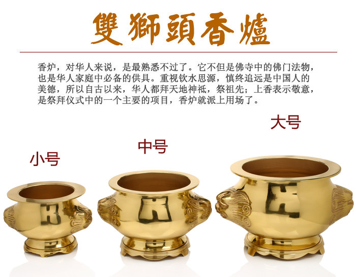 Product features: The incense burner,?the?Chinese people,?is the most familiar.?It is not only?Buddhist temple?buddhist?method,?an?essential?is?the Chinese family. The lion is?a?kind of?animal,?the king of beasts,?unstoppable,?Megatron Quartet,?not only can?ward off evil,?and can bring?auspicious gas,?can remove various brake,?also strengthened?the official authority or the owner yang. Product?introduction: Name:?lion?head stove Material:?Copper Size: small?approximately the?length 14cm* width?12.5cm* high?9.8cm M?about the?length 18.5cm* width?14.5cm* high?11.6cm L?about the?length 22cm* width?17.3cm* high?13.5cm Weight:?about?0.82kg m?s?about 1.41kg?size?of about 2.19kg Packaging: general packaging ? | ||