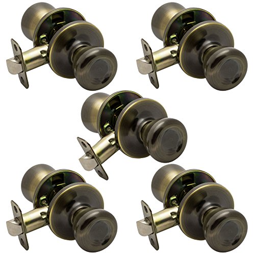 -. Brand : PRO Knobs -. Color : Antique Brass -. EAN : 0615867184253 -. Feature : 5 pack of elegant antique brass finish passage door knobs / Universal handing; fits both left and right handed doors / 25 year mechanical and finish warranty / Fully adjustable latch included, to fit classic 1 3/8" to 1 3/4" doors / Easy to install, comes with installation template in package -. Label : PRO Knobs -. Manufacturer : PRO Knobs -. Model : 43-961-AB-5PK -. MPN : 43-961-AB-5PK -. PackageQuantity : 5 -. PartNumber : 43-961-AB-5PK -. ProductGroup : Home Improvement -. ProductTypeName : HARDWARE -. Publisher : PRO Knobs -. Studio : PRO Knobs -. Title : 5 Pack of Pro-Grade Classic Passage Hallway Closet Door Knobs Handles, Antique Brass -. UPC : 615867184253