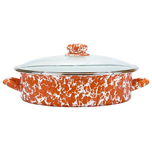 -. Feature : 8 Quart Saute Pan with Lid - 13.25 Diameter - Stands 4.75 Inches Tall / Beautiful Orange Swirl Pattern on Porcelain Enamel Finish / Part of the Golden Rabbit Orange Swirl Collection / Stainless Steel Rims for Extra Durability / Oven and Stovetop Safe - Works with Induction - Dishwasher Safe - Not Intended for Microwave