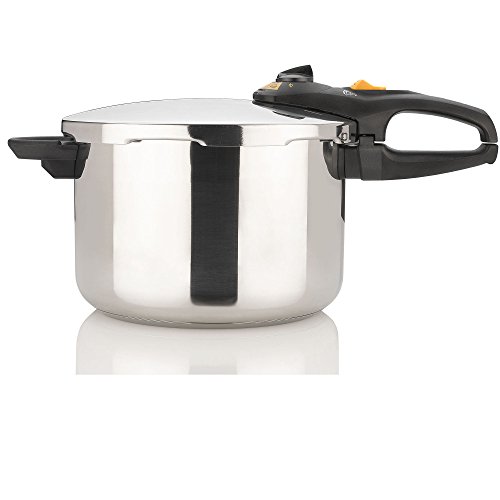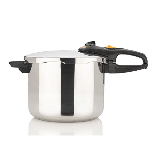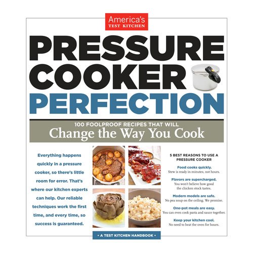 Pressure cookers are gaining momentum as the new healthy, time-saving, and energy-saving way to prepare food. While not a new method, the technology has certainly been transformed over the years to be easier and safer than ever. Constructed from 18/10 stainless steel for long-lasting durability, this 8-quart pressure cooker makes it possible to save up to 70 percent of the time and energy traditionally used in cooking rice, meat, and vegetables. The cooker's lid offers a long handle made of black heat-resistant plastic for comfortable use. A safety-lock handle, visual pressure indicator, and an automatic pressure-release setting ensure the lid won't come off unintentionally. For added convenience, the cooker provides a handy basket insert, complete with legs and a loop handle--great for draining pasta or steaming vegetables. Dishwasher-safe parts make cleanup a snap, and an instruction manual and recipe book come included. Designed for use on all heat sources, the pressure cooker measures approximately 17-1/5 by 11 by 10 inches and carries a 10-year warranty. America's Test Kitchen 'Pressure Cooker Perfection' cookbook includes 100 foolproof recipes that will change the way you cook. Everything happens quickly in a pressure cooker, so there is little room for errors. That's when our kitchen experts can help. Our reliable techniques work the first time, and every time, so success is guaranteed. 5 best reasons to use a pressure cooker: Food cooks quickly: stew is ready in minutes, not hours. Flavors are super charged: you won't believe how good the chicken stock tastes. Modern models are safe: No pea soup on the ceiling. We promise. One- pot meals are easy: You can even cook pasta and sauce together. Keep your kitchen cool: no need to heat the oven for hours.Feature