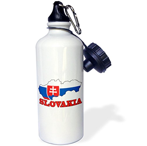 3dRose wb_63202_1 The Flag of Slovakia in The Outline Map of The Country and Name, Slovakia Sports Water Bottle, 21 oz, White