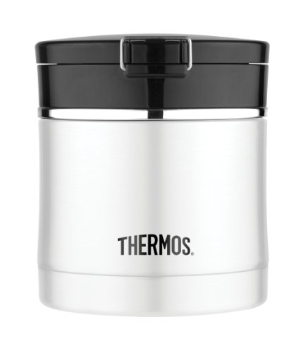 The Thermos brand 10 ounce food jar with flip-top lid features premium, double wall vacuum insulation so the stainless steel body stays cool to the touch with hot items and condensation-free with cold items. Only the best materials are used to construct this food jar and it is 100% BPA-free.