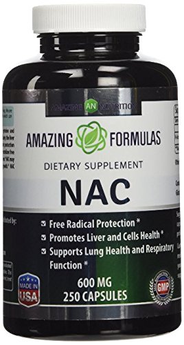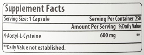 -. Binding : Health and Beauty -. Brand : Amazing Nutrition -. EAN : 0810180020862 -. Feature : N-Acetyl Cysteine (NAC) is a stable form of the non-essential amino acid L-Cysteine. / It is a sulfur-containing amino acid that acts as a stabilizer for the formation of protein structures, and is also necessary for the formation of Glutathione / Free Radial Protection - Promotes Liver and Cell Health - Supports Lung Health and Respiratory Function / All Amazing Nutrition products are manufactured in accordance with Good Manufacturing Practices (GMP), among the highest standards in the world; Proudly Made in USA; Purity & Potency Guaranteed -. IsAdultProduct : 0 -. Label : Amazing Nutrition -. Manufacturer : Amazing Nutrition -. PackageQuantity : 1 -. ProductGroup : Health and Beauty -. ProductTypeName : HEALTH_PERSONAL_CARE -. Publisher : Amazing Nutrition -. Size : 250 Capsules -. Studio : Amazing Nutrition -. Title : Amazing Nutrition NAC Dietary Supplement, 600 Mg, 250 Capsules -. UPC : 810180020862