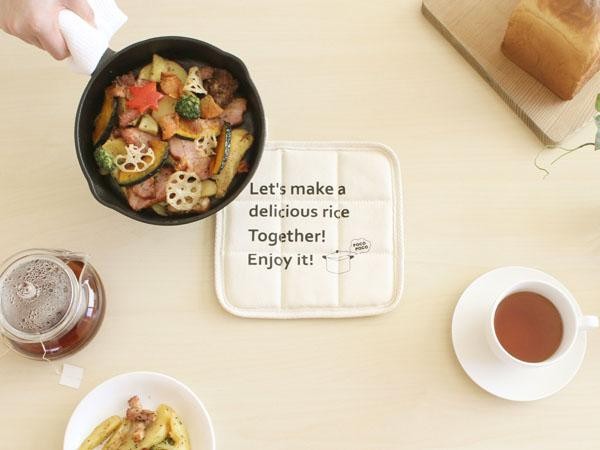 丈夫な帆布生地を使用したなべ敷きです。便利な吊りひも付き♪