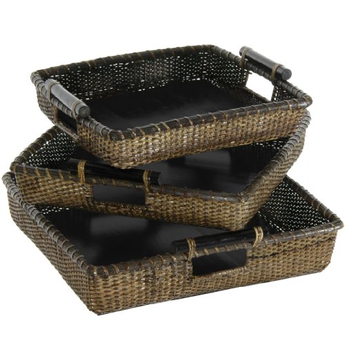 Oriental Furniture Rattan Square Tote with Pole Handles ( Set of 3 )