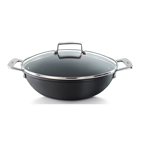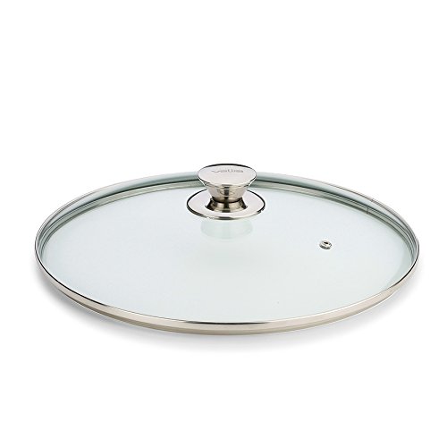 Optimized weight and easy to handle with two riveted handles that provide a "stay cool" effect; see through glass lid/cover with loop handle and stainless steel rim