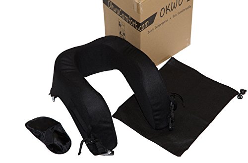 - Feature : Okwu Neck Pillow works like a rolled up pillow that can fill the air space between your neck and the pillow. It will relax the neck muscles and help prevent misalignment of the neck. Promotes sleeping and helps maintain proper head and neck alignment. / Great for traveling (Plane, train, car, ship, Boat, Yacht, or Bus) Or Just sitting and watching Games, reading, movies, relaxing, sleeping, sitting in a wheelchair, neck comfort, walking, sightseeing, and working on your desktop or laptop. Comes with a FREE PAIR of Eye Cover / Ergonomically designed, molds perfectly to your neck, zippered, machine washable plush velour cover, built-in parachute buckle and strap for neck and head stability making it easy to relax and to attach to a carry-on luggage. / Patented design for comfort made of high quality thermosensitive memory foam, custom support and fit. / Affordability, stability, durability, portability, and Unbeatable Neck Pillow. Removable and washable cover; Better than what is on the market. Come on!