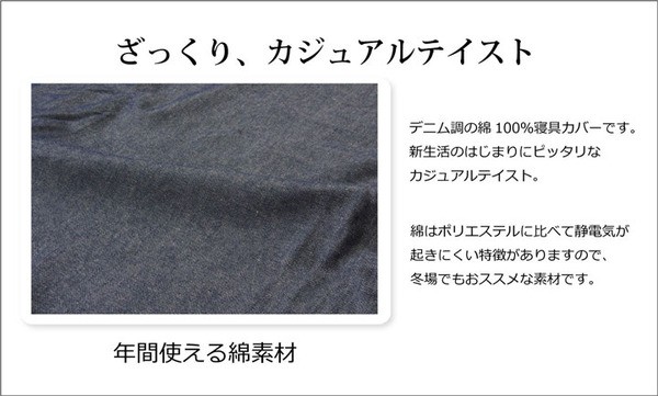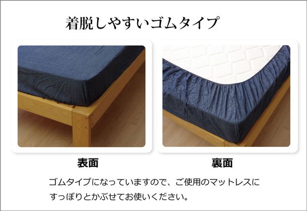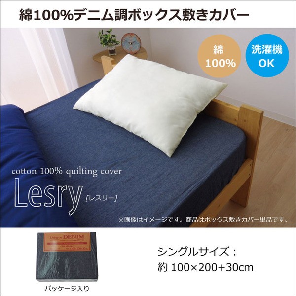 【商品名】綿100% デニム風 ボックスシーツ 『レスリーBOX敷きカバー』 シングル 約100×200+30cm