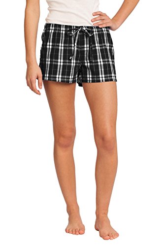 District Women's Elastic Drawcord Flannel Plaid Boxer