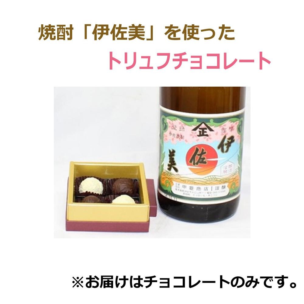 | 原材料 | 砂糖・植物油脂・全粉乳・ココアバター・焼酎(伊佐美)・ココアパウダー・乳糖・カカオマス・乳化剤・香料(原材料の一部に大豆を含む) アルコール分4.2%以下 |