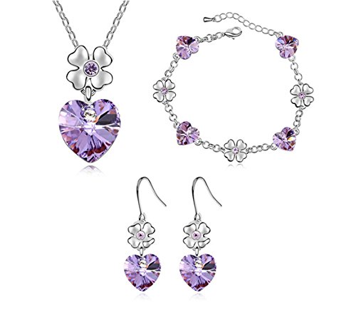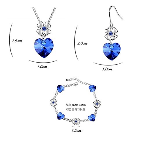 -. Binding : Jewelry -. Brand : Gift for Girls -. Department : womens -. Feature : The Jewerly are set with REAL Swarovski Elements Crystal / Made of cooper and plated with white gold to add resistance to tarnish / Intricate high polish creates glamorous reflections and adds a luxurious look to this Jewelry Set / The necklace is 16 inches long with a 2 inch adjustable chain tail.The necklace pendant measures 0.39 inch(1.0cm) wide and 0.74 inch(1.9cm) high / The Earrings measures 0.39 inch(1.0cm) wide and 0.78 inch(2.0cm) high. Bracelets Perimeter 16cm+4cm -. Label : Gift for Girls -. Manufacturer : Gift for Girls -. ProductGroup : Jewelry -. ProductTypeName : FASHIONNECKLACEBRACELETANKLET -. Publisher : Gift for Girls -. Studio : Gift for Girls -. Title : Silver-tone Flower Love Heart Swarovski Elements Jewelry Set, Australia Import Crystal Necklace, Bracelets, Earrings Ensemble Fashion Jewelry