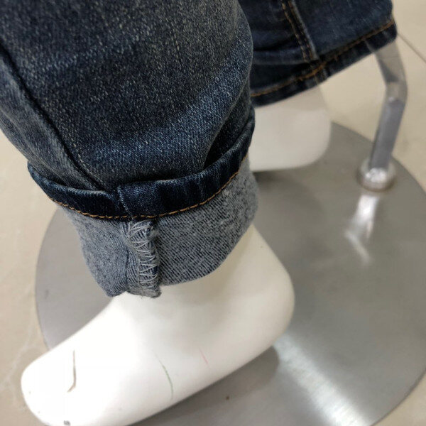 허리에서부터 밑단 까지 다리라인이 드러나는 타이트한 핏 입니다. 타이트한 착용감을 보완하기 위하여 스트레치 감 좋고 힘 있는 소재를 사용하여 다라라인을 잡아주고 활동성을 강화시킨 디자인 입니다.