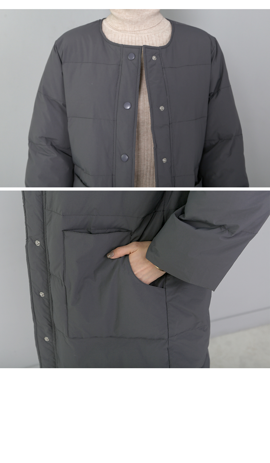 심플라인의 노카라 롱 패딩이에요