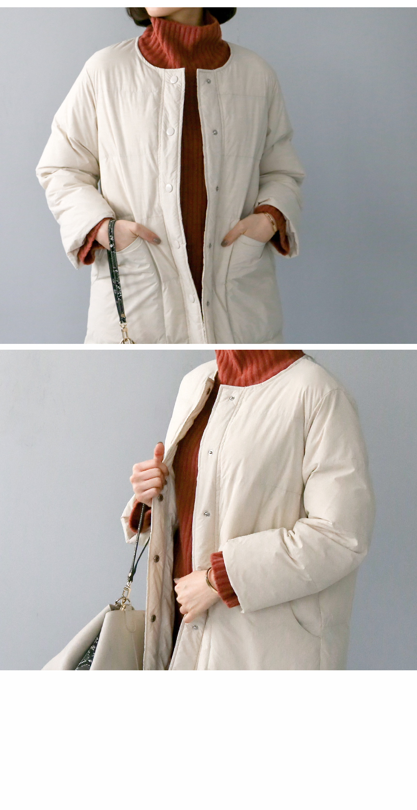 넓은 패딩라인과 큰 투웨이 포켓이