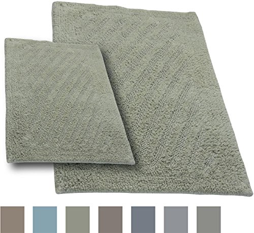 Castle Hill 2-Piece 100-Percent Cotton Linear Reversible Bath Rug, LIGHT SAGE, 20x30/24x40