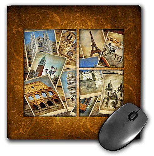 3D Rose "Vintage Travel Collage" Matte Finish Mouse Pad - 8 x 8" - mp_99539_1