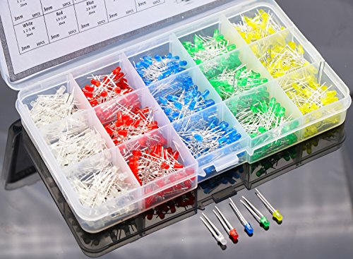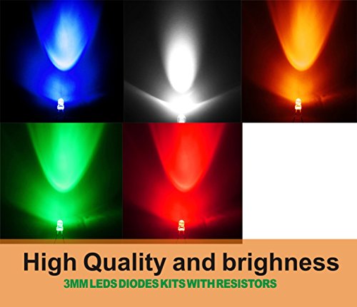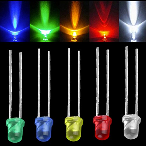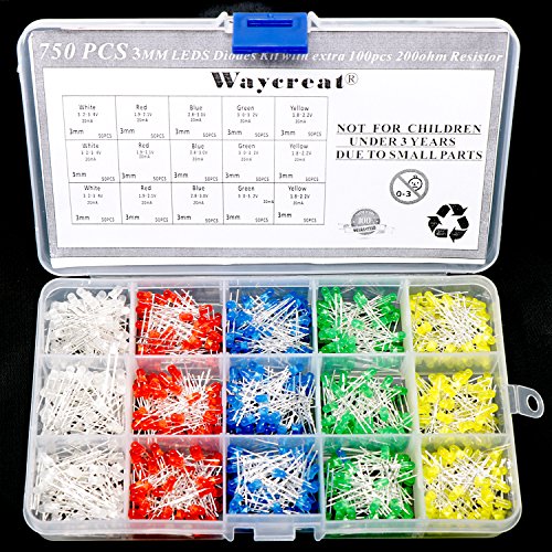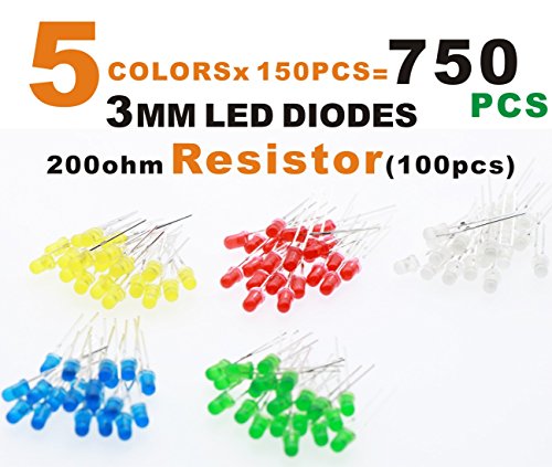 Waycreat 3mm 750PCS (5 colors x 150pcs) Milky LED Emitting Diodes Diffused Light Kit with 100PCS 200ohm Resistor)