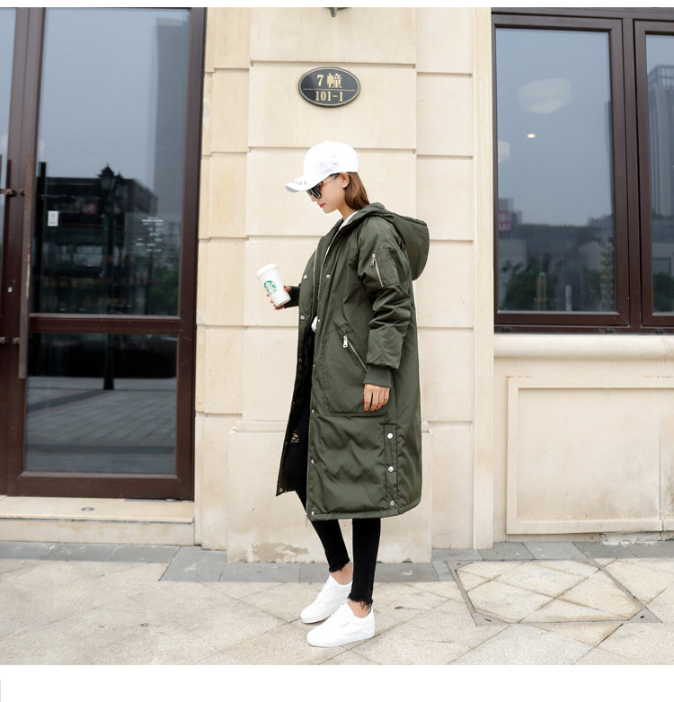 这款棉衣特别的轻,中长款的一个设计也是很拉高身材的版型,