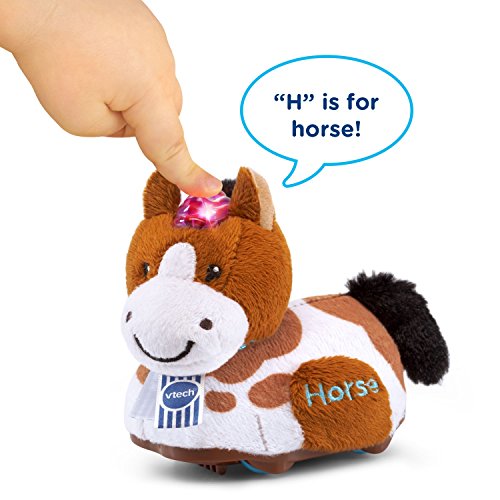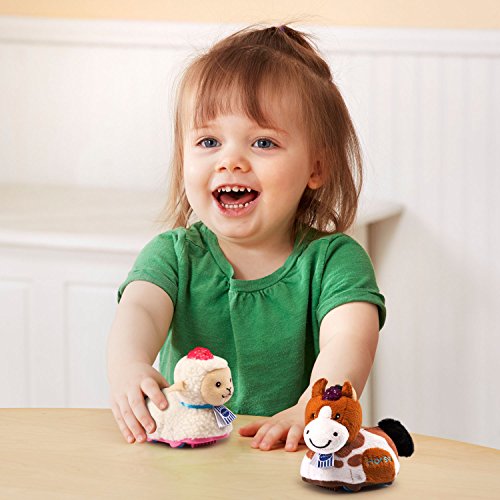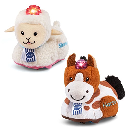 Have fun on the farm with the Go! Go! Smart Animals® Furry Animals 2-Pack! This set includes a horse and a sheep that are fun to cuddle with their soft fur and plush heads. Press their light-up buttons to hear three sing-along songs and each animal teaches a letter "H" (for the horse) or "S" (for the sheep) and the name of the animal as you play. Place the furry animals on SmartPoint® locations, and they will respond with different phrases and more on Go! Go! Smart Animals® playsets and Go! Go! Smart Wheels® tracks (each sold separately). Push the horse and sheep to hear fun sounds and melodies. While a melody is playing, push them again to add fun sounds on top of the melody. Each Go! Go! Smart Animals® character is unique. Collect them all to experience their friendly personalities (each sold separately)! Each plush animal requires 2 AAA batteries, batteries included for demo purposes only; new batteries recommended for regular use; intended for ages 1 to 5 years.Feature