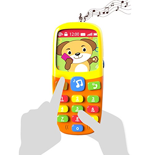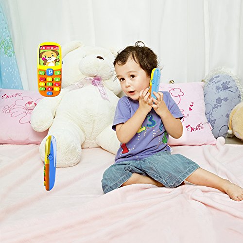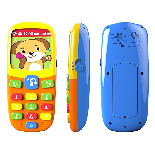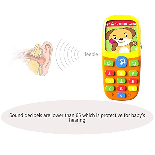 Changeable Screen and Soft Light: lovely pictures of the cartoon screen is changeable by shaking the phone, the three function buttons will flash soft light pressed, attracting baby's attention and entertaining them.