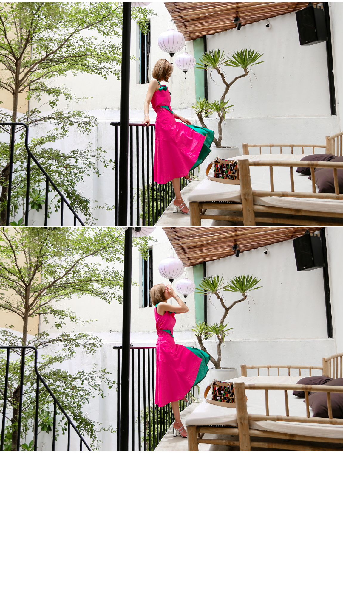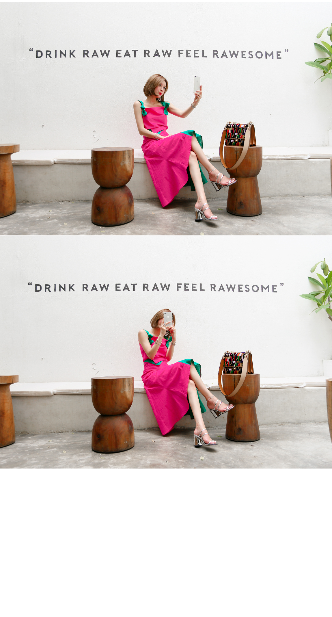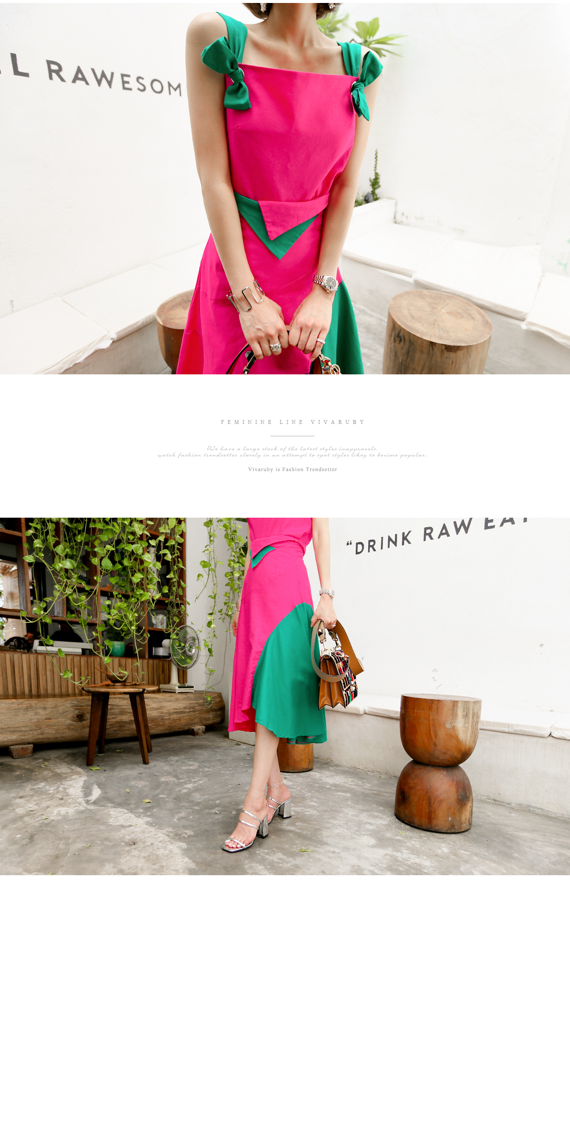 '(ピンク)ビビッドカットのツーピース'