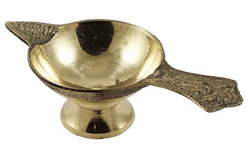 Handmade Indian Brass Oil Lamp - Diya Lamp Engraved Peacock Design - 4.5" x 2" x 1.4" (Pack of 2)