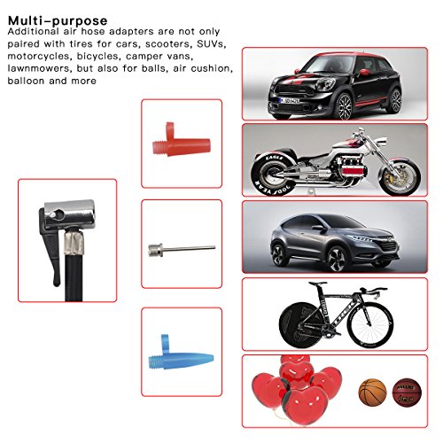 ✔MULTI-PURPOSE: Additional air hose adapters are not only paired with tires for cars, scooters, SUVs, motorcycles, bicycles, camper vans, lawnmowers, but also for balls, air cushion, balloon and more