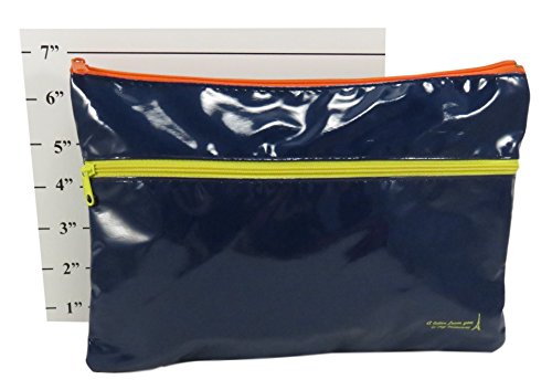 Shiny Two Pocket Zipper Case Pouch Bag Pencil Pen Cosmetic Travel 10 x 7 Blue (Set of 2)