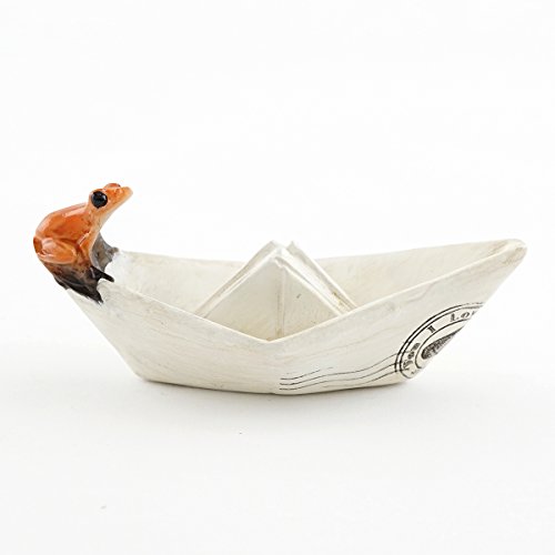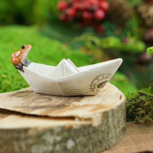 Top Collection Miniature Fairy Garden and Terrarium Sealed with Love Frog on Paper Boat Statue