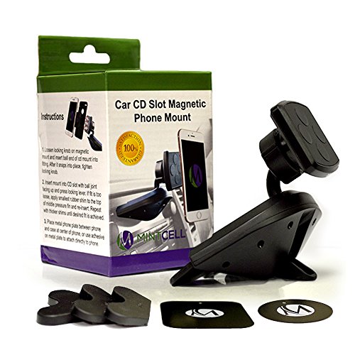 Car Mount, MintCell Magnetic Cradle-less Smartphone Car Holder - Enhanced CD Slot One Snap Version for all iPhones and Samsung Galaxy, Note, LG G4, and other cell Phones and Mobile Devices