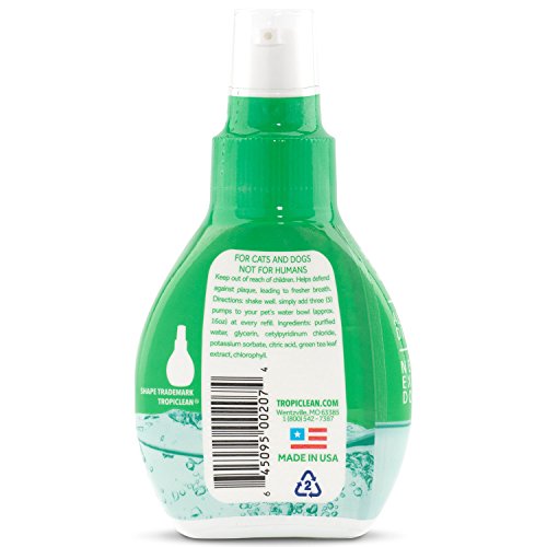Studio : Cosmos Corporation Publisher : Cosmos Corporation Binding : Misc. Product Description TropiClean’s Fresh Breath Cat Drops keep your cat's mouths healthy and their breath fresh. Developed with natural ingredients, Fresh Breath Cat Drops help turn bad cat breath into fresh breath while providing essential daily oral care. Simply add 3 Fresh Breath Cat Drops to his or her water bowl with every refill to give your cat fresh breath, healthy mouth and happy moments. 0