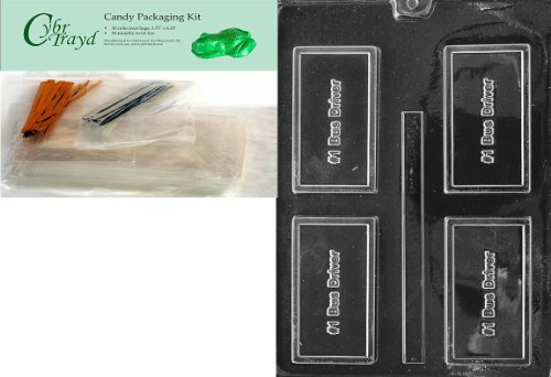 Cybrtrayd "No.1 Busdriver" Business Card Chocolate Candy Mold with Packaging Bundle of 50 Cello Bags, 25 Gold/25 Silver Twist Ties and Chocolate Molding Instructions