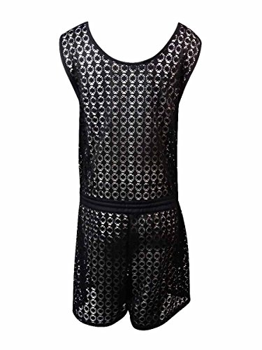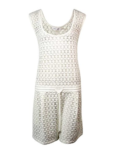 Calvin Klein Women's Belted Crochet Lace Romper Swim Cover