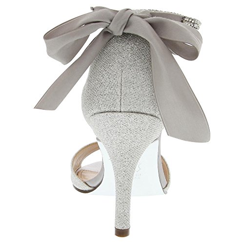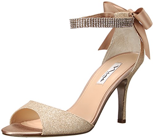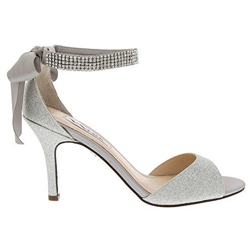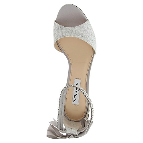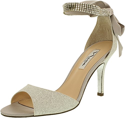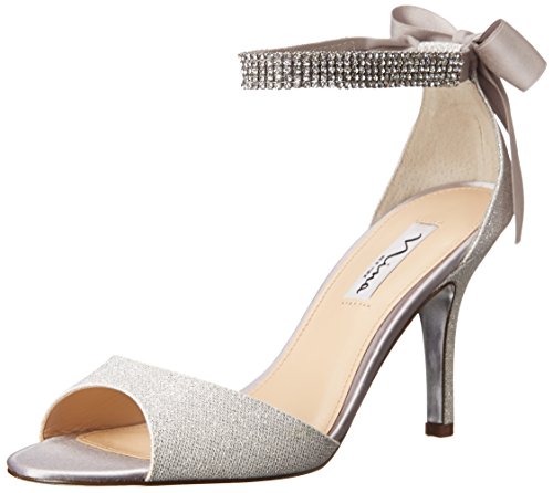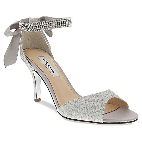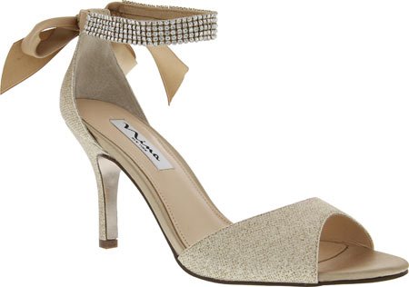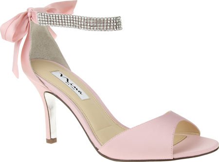 Enjoy an enchanted evening in the Nina Vinnie open-toe dress sandal. The lustrous satin upper of this women's evening shoe is enhanced by crystal stud details for dazzling style. The leather sole offers a stable foundation for dancing the night away.Feature