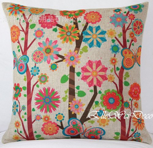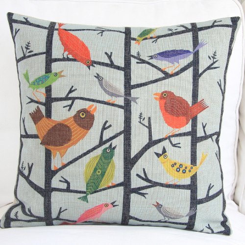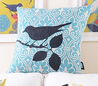 Elleweideco Quilting Weight Linen Bird with Blue Back Print Throw Pillow Cover