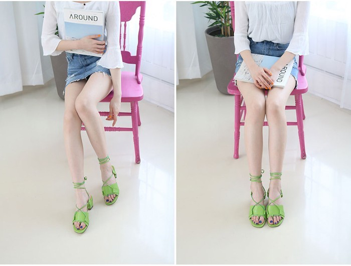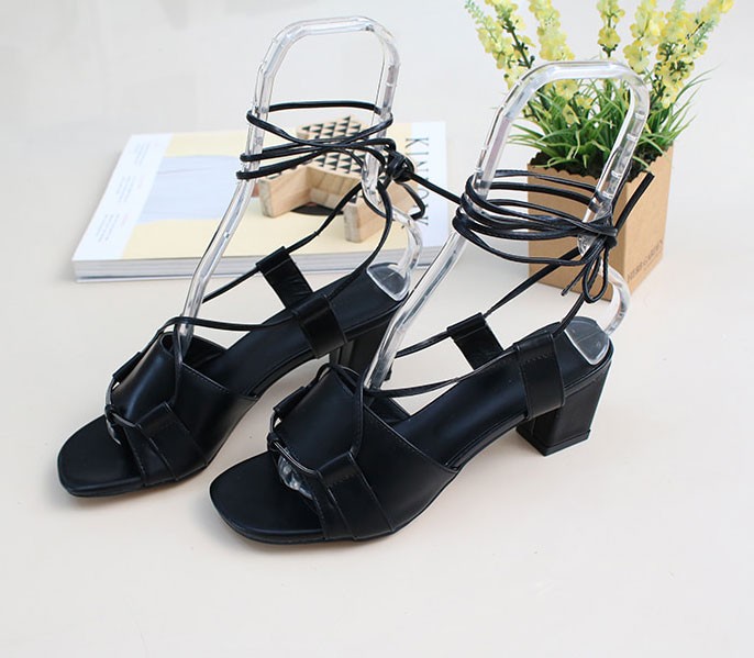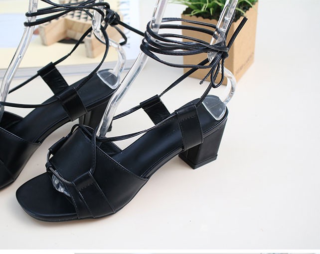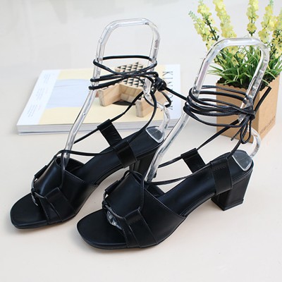 商品名:サンダル レディース 太ヒール チャンキーヒール レースアップ 2018 春 ファッション 靴 婦人靴