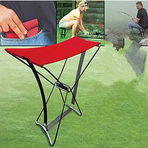 [name]: folding portable fishing stool[Material]: metal skeleton cloth cushion[Size]: stool length 29.5cm, stool width 16CM, stool height 26.5CM