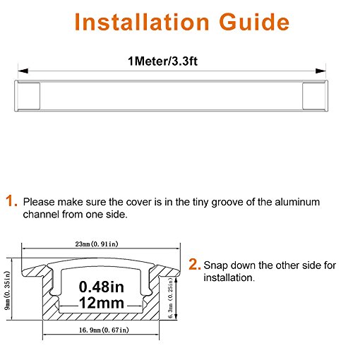 Package includes: 5x 1m/3.3ft per segment with cover (x5), end caps (x10) and mounting clips (x10).For additional end caps please search B01GP874ZE; Extra mounting clips please search B01GP873LY on Amazon