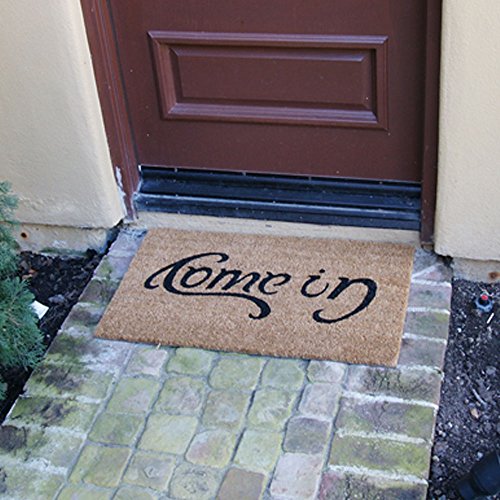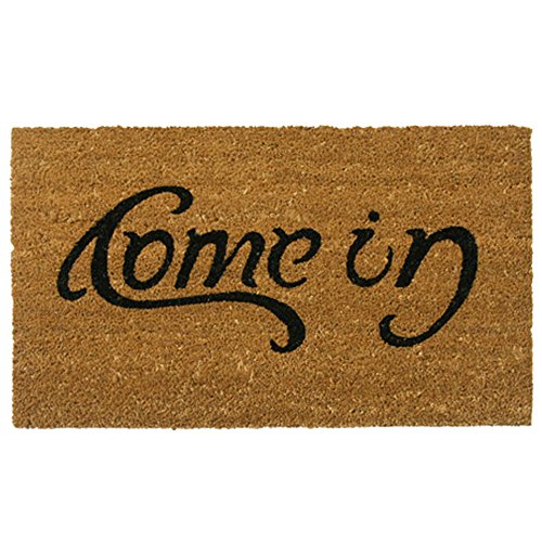 Rubber-Cal'S "come in" welcome door mat is the natural, sustainable answer to your home entryway needs. Make your guests feel welcome by greeting them with a simple, classic welcome door mat made from eco-friendly materials. This coir door mat is constructed using a simple and organic design and eco-friendly materials, and it is extremely easy to maintain while it keeping your home cleaner! the design of these stenciled entrance mats is subtle and inviting. Set in a natural brown backdrop, the simple words iCome ini are printed in easy-to-read text, making your guests feel welcome. This coir door mat fits perfectly at any residential front door due to its simple design and convenient 18 x 30 inch size with a 5/8-inch thickness. This eco-friendly door mat doesn't just look natural n these entrance mats are also mostly made by hand from environmentally friendly materials! using an eco-conscious process, coconut husks are gathered and their fibrous material extracted and woven together to shape the mat. In addition to having a low impact on the environment, this coir door mat also ensures that the dirt and grime of the outdoors has a minimal impact on your home. This welcome door mat collects dust and dirt particles that can easily be shaken off when cleaning becomes necessary. For grime that may be more persistent, a brush or vacuum is the simplest way to keep this door mat looking like new! the "come in" welcome door mat is constructed with simplicity and environmental health in mind. Its durable material allows for the wiping of shoes in order to keep your home a little cleaner. This coir fiber matting is made of natural materials extracted from coconut husks for an eco-friendly product. By letting guests know they are welcome, this coir door mat will fit perfectly at the foot of your front door!.Feature