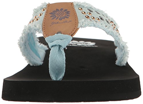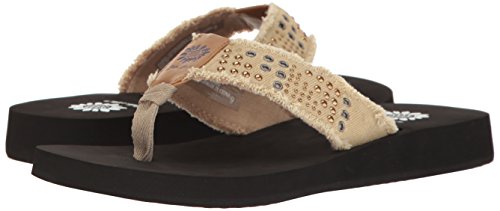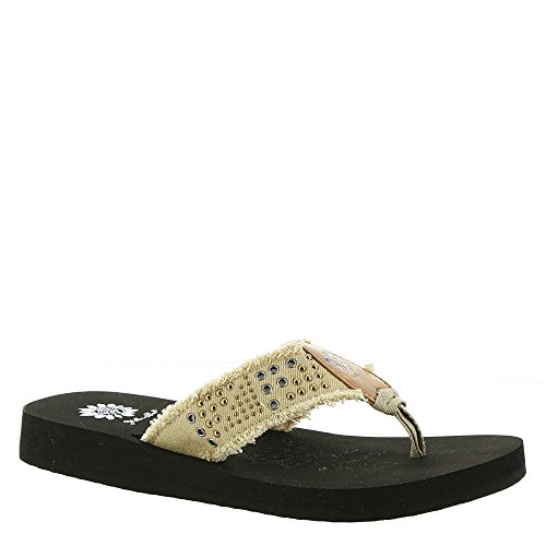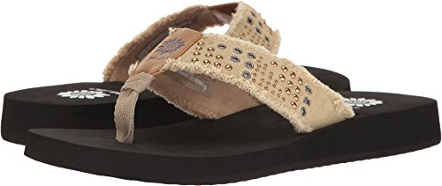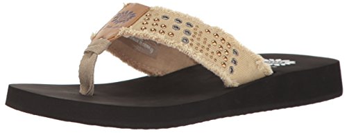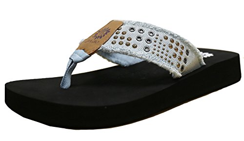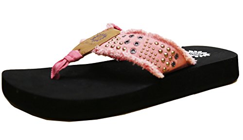 Product DescriptionA lightweight casual fabric flip flop with tiny studs on the upper. soft, comfortable low wedge construction for every age.0