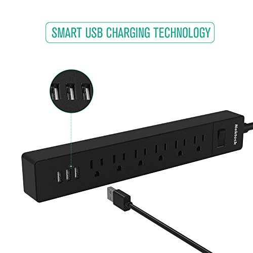 Nekteck Power Strip Flat Wall Plug with 6 AC Outlets, 15W 3-Port USB Charger for iPhone, iPad, Samsung Galaxys, Nexus, Tablets, HTC M9, Motorola, LG and More [4.8ft Cord, 6AC, 3 USB]