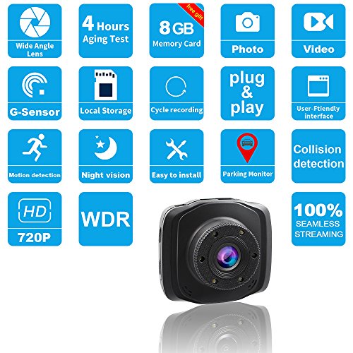 2.5”LCD HD 720P High Sensitivity Night Vision Dashboard Camera Recorder With Sony Exmor CMOS sensor,G-Sensor, Collision Detection,Parking Monitor,and Seamless Loop Recording(Free 8GB Micro SD Card)