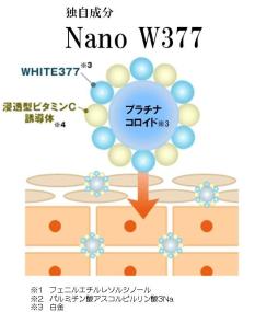 WHITE377*1と高浸透型ビタミンC誘導体*2配合の美容液。プラチナコロイド*3にWHITE377*1と高浸透型ビタミンC誘導体*2を結合させた、ドクターシーラボ独自成分「Nano W377*4」を初配合しました。また、生ビタミンC*5をドクターシーラボで初配合した美容液です。