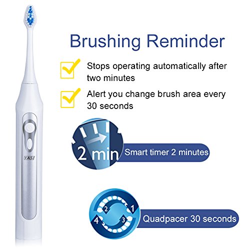 Sonic Electric Toothbrush Deep Clean as Dentist Rechargeable Travel Toothbrush 5 Modes Waterproof 2 Replacement Heads Tongue Brush by YASI Oral (White)