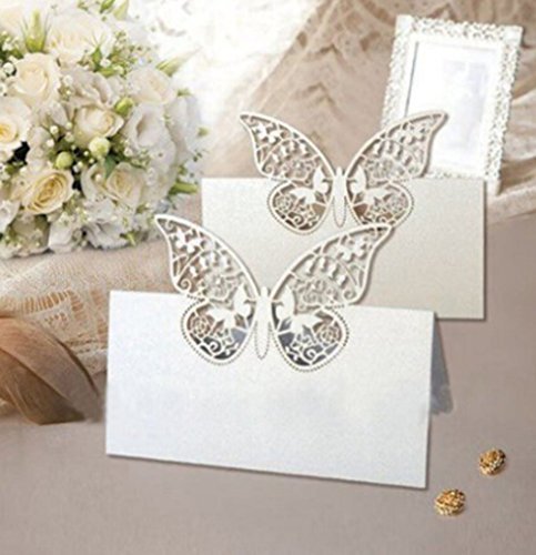 vanki Pack of 48 Laser Cut Butterfly Vine Wedding Table Number Name Place Card Wedding Party Decoration Favor