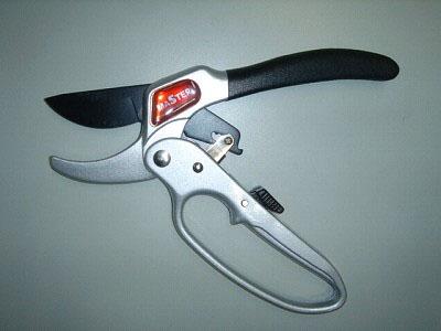 ラチェット式なので、握力の弱い女性や高齢者の方にも楽に剪定ができます。4段式特殊ギアの補助で太い枝でも4回にわけて切ることができます。持ち手は人間工学に基づき設計された左右対称タイプで右利きでも左利きでも握りやすくなっています。刃先は鋼鉄製でフッ素樹脂加工されているので錆びにくく、樹液がついても拭き取るだけでOKです。 | |