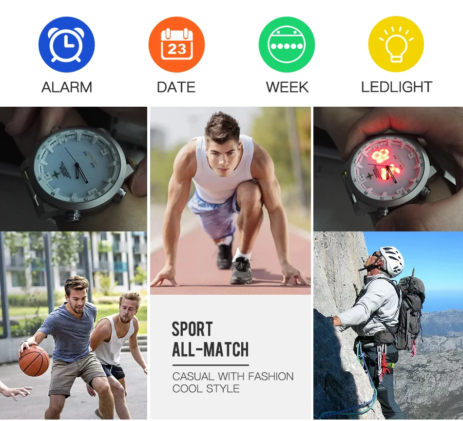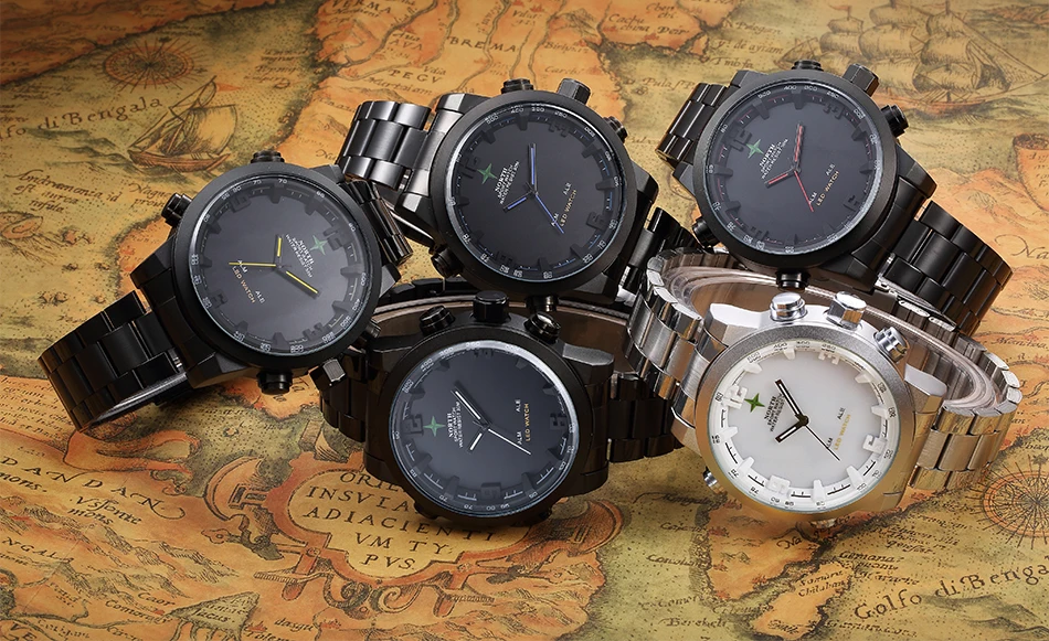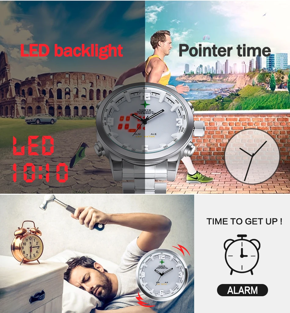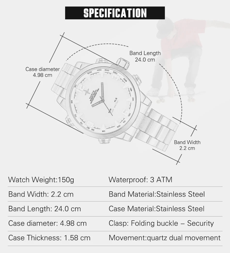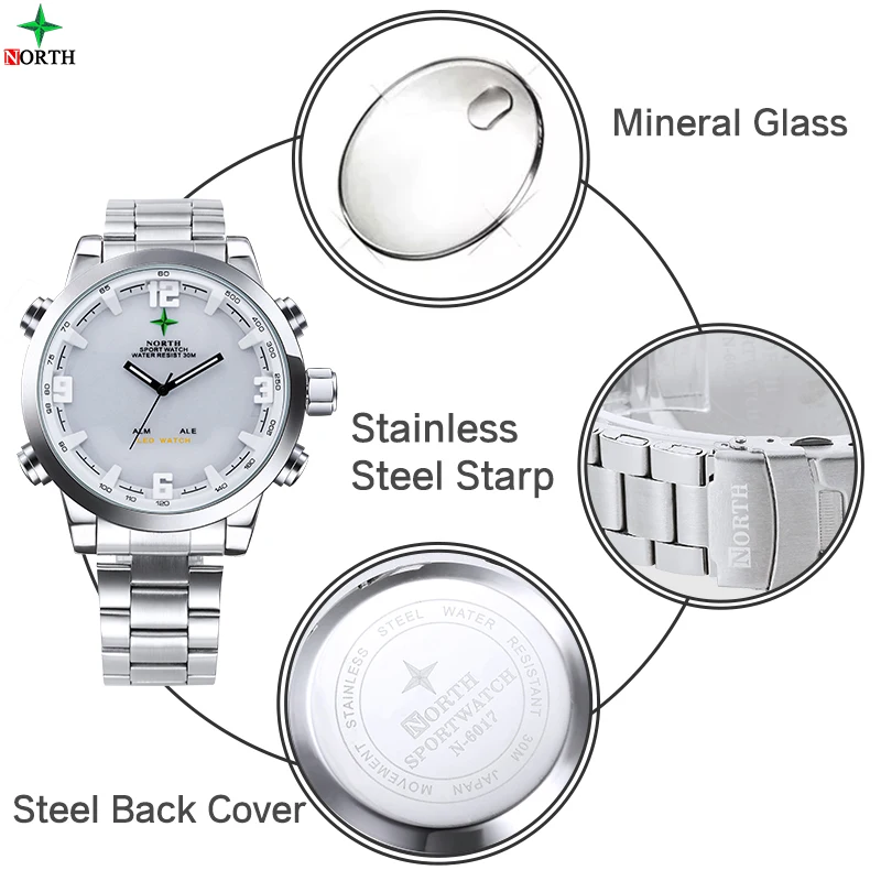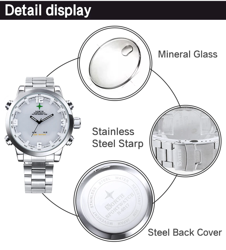Feature:Auto Date,Complete Calendar,Shock Resistant,Week Display,Water Resistant,Stop Watch,Back Light,Multiple Time Zone,Alarm
